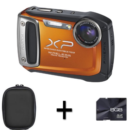 Fujifilm FinePix XP170 - Orange + Case and 8GB Memory Card(14MP CMOS, 5x Optical Zoom, Waterproof,Freezeproof,Dust/Shock Proof) 2.7 inch LCD Screen - A feature packed camera, built to withstand tough action-packed adventures, not for the faint-hearted. Whether the action is on a bike, in the water, or on the slopes, the XP170 will stay by your side, come rain or shine. As well as being super-durable, the XP170 features a core specification including a 14 megapixel FSI-CMOS sensor, a 5x Fujinon optical zoom lens, a 2.7inch LCD screen, waterproof to 10m, freezeproof to -10, dustproof and shockproof to 2m. What's more with features such as Full