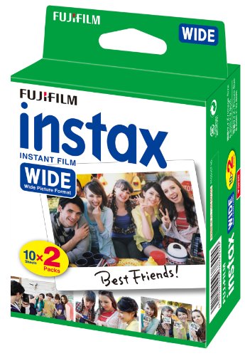Fujifilm Instax Wide Gloss Instant Film Suitable for Fujifilm Instax 210 Camera (Pack of 2 x10 Shots) - 6.2cm x 9.9cm, iso 800. The instax 210รข€TMs easy-to load cartridge delivers 10 superb wide format instant photos. instax film ensures sharp, clear reproduction, vivid color and natural skin tones. Highly stable, the new emulsion performs at temperatures as low as 5 degrees and as high as 40.
